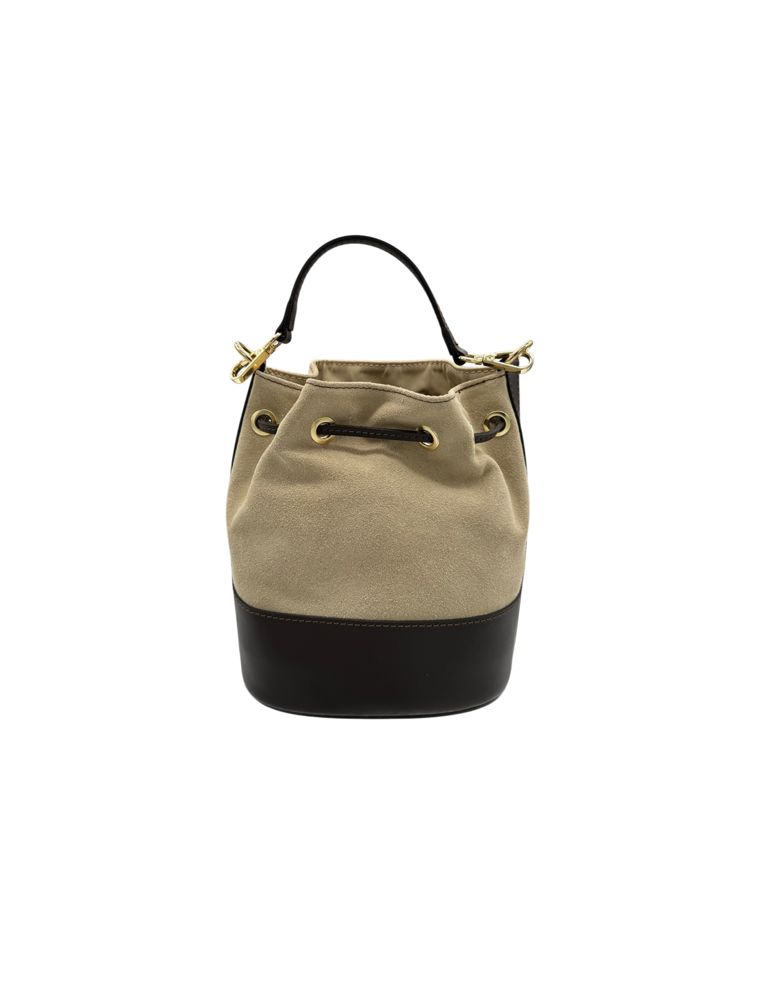 Il secchiello piccolo è la versione compatta e versatile di un grande classico. Realizzato con fondo e bordi in pelle e corpo in morbido camoscio, unisce eleganza e praticità in un formato più contenuto ma estremamente funzionale.