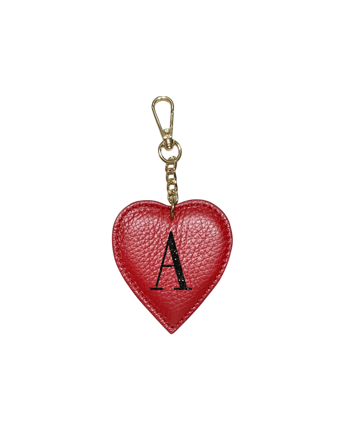 Portachiavi a forma di cuore in pelle, personalizzabile con l’iniziale del tuo nome in glitter brillante.