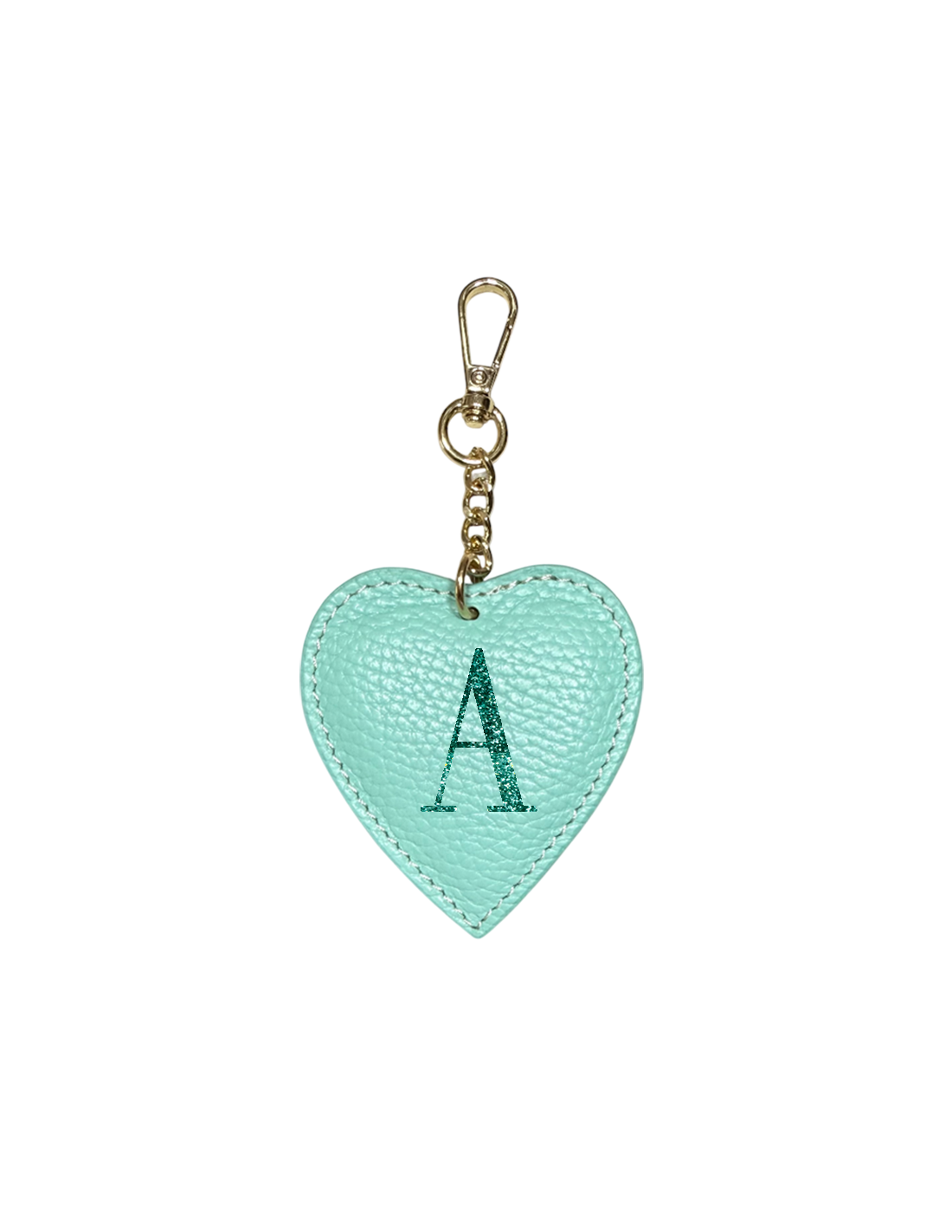 Portachiavi a forma di cuore in pelle, personalizzabile con l’iniziale del tuo nome in glitter brillante.