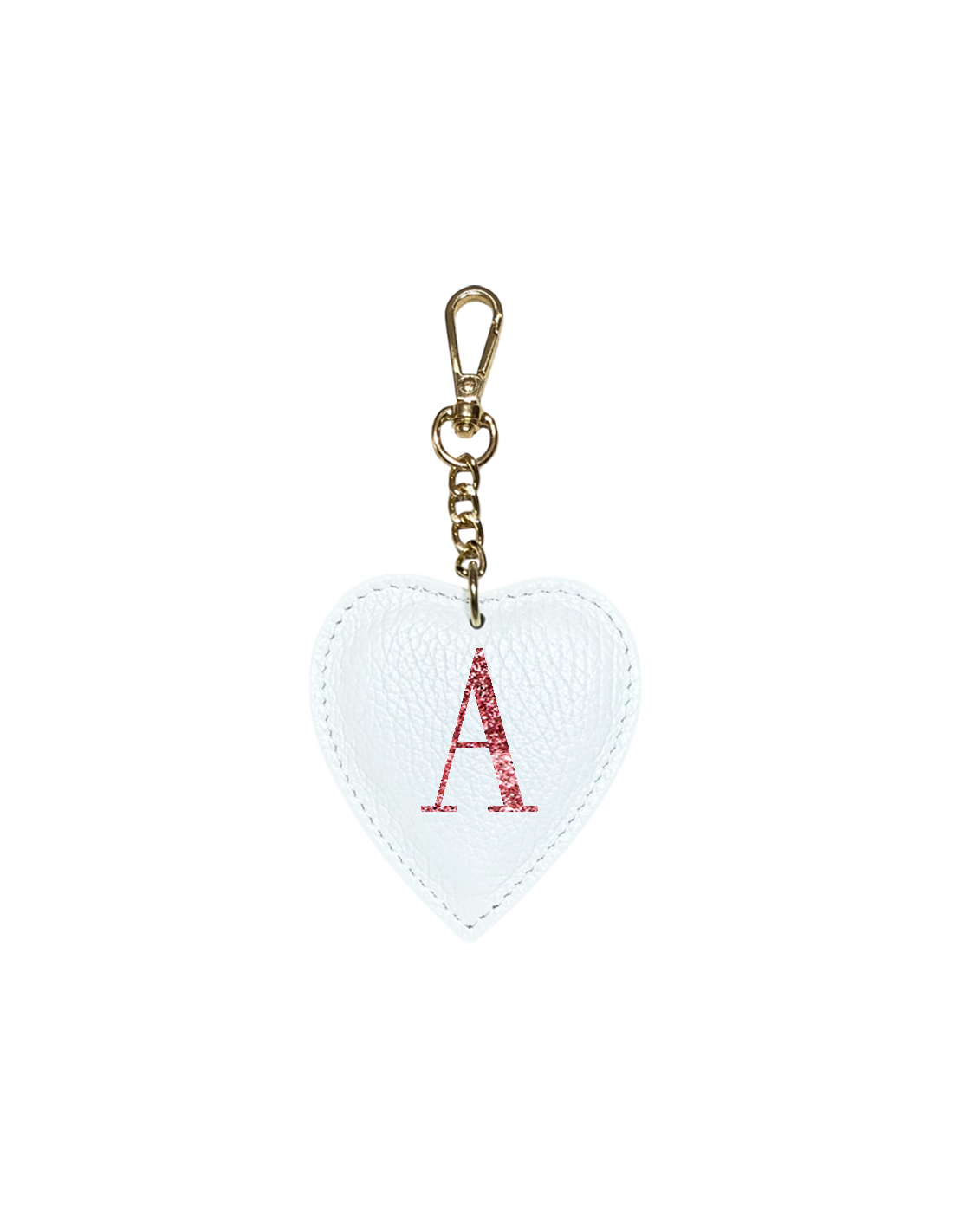 Portachiavi a forma di cuore in pelle, personalizzabile con l’iniziale del tuo nome in glitter brillante.
