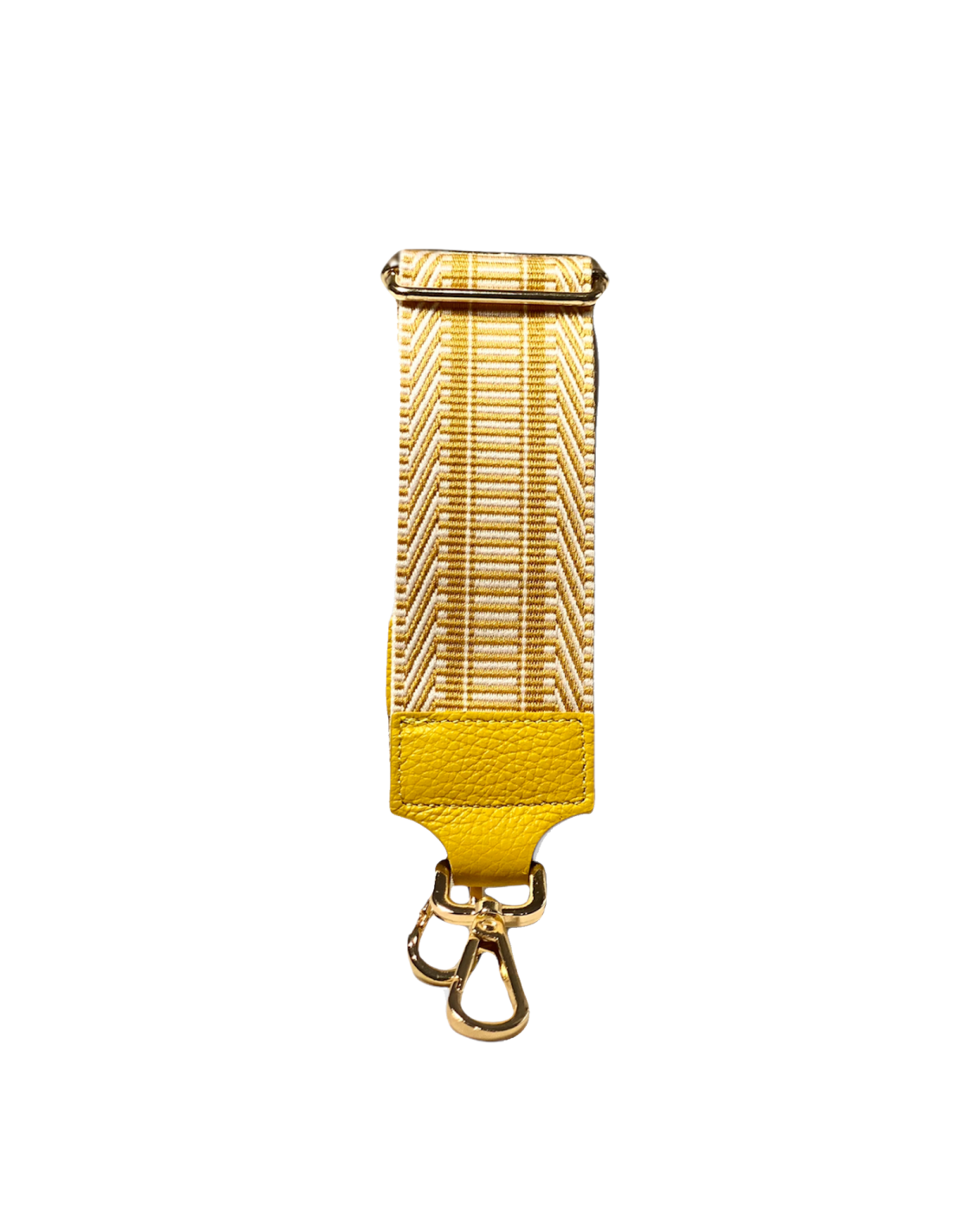 Tracolla personalizzabile in pelle giallo chiaro , fantasia tessuto colori rombi giallo, verde, nero e bianco