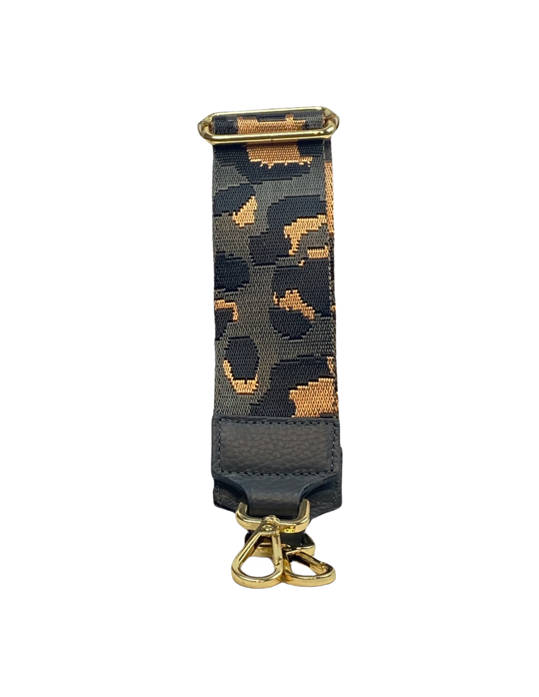 Tracolla personalizzabile in pelle nero , fantasia tessuto maculata grigio, nero
